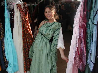 She tries on clothes every where she goes.