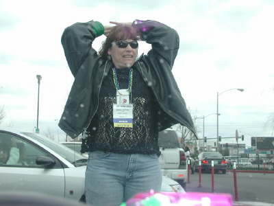 Standing in the rain at the gamma Trade show.