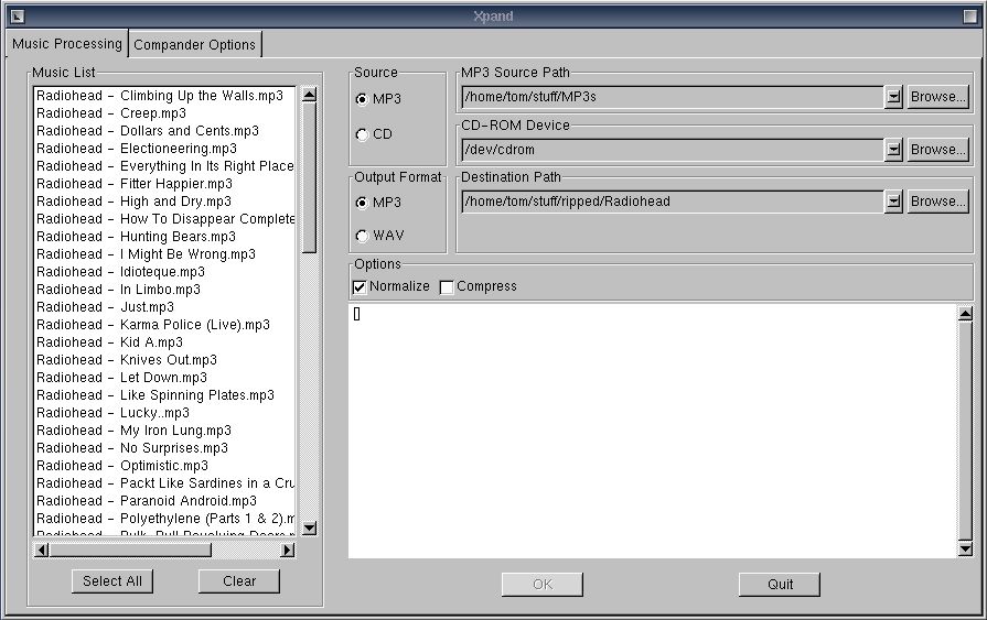 | Xpand is a simple Python script with Glade GUI front-end for sox, cdparanoia,